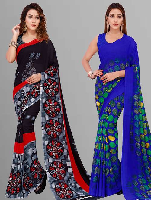 pack of 2 printed casual wear sarees with blouse - 21405536 - Very Small Image - 1