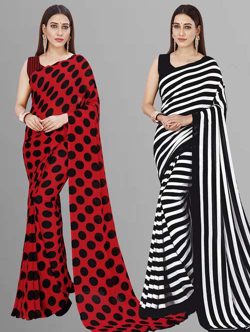 pack of 2 printed casual wear sarees with blouse - 21405776 - Very Small Image - 1