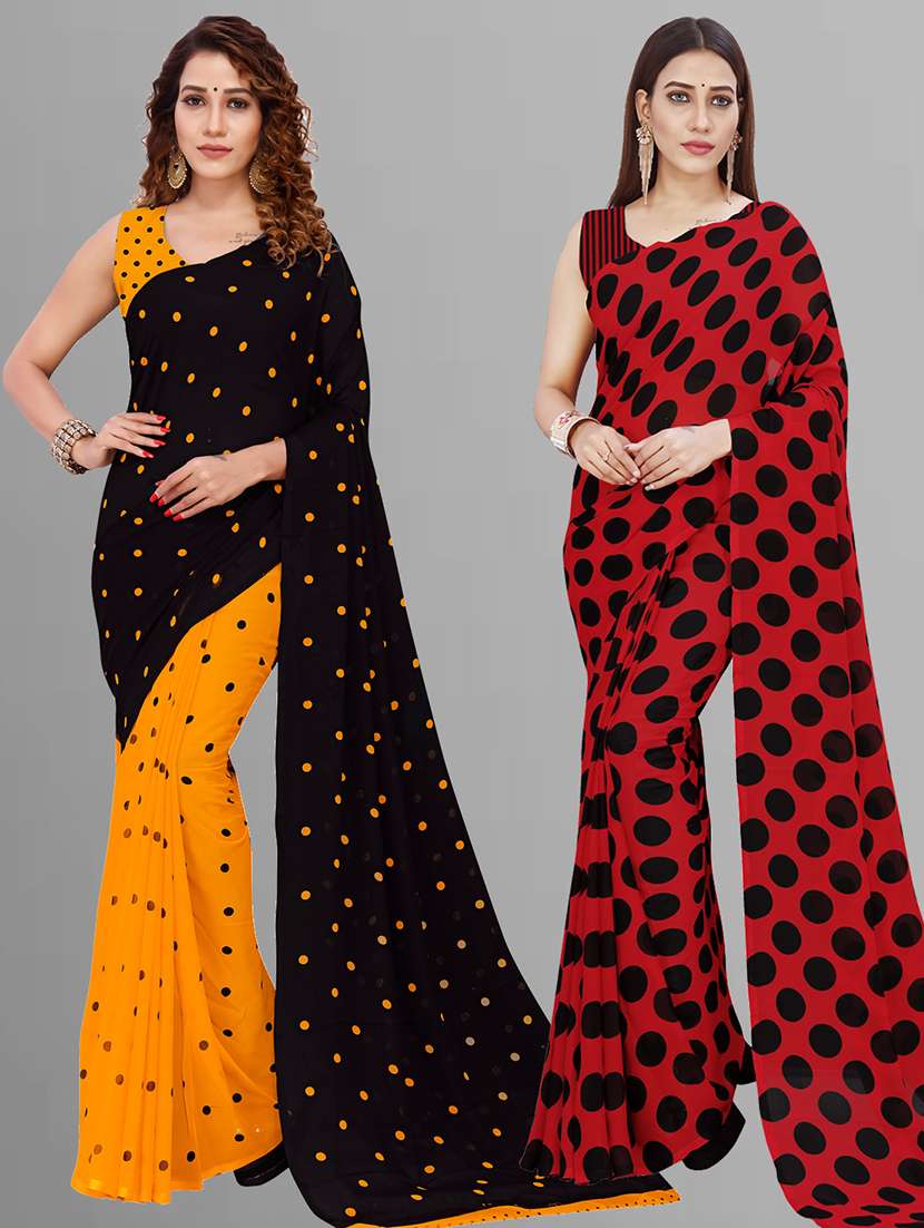 pack of 2 printed casual wear sarees with blouse - 21405780 - Very Small Image - 1