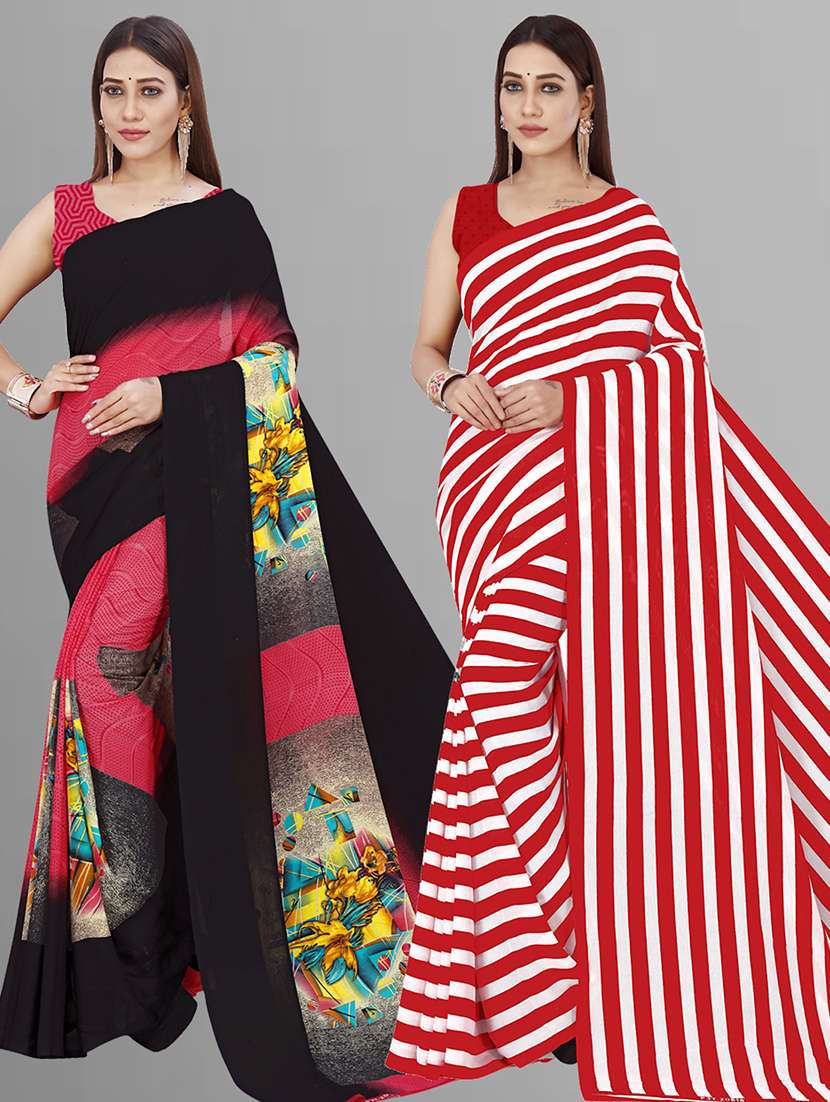 pack of 2 printed casual wear sarees with blouse - 21405939 - Very Small Image - 1