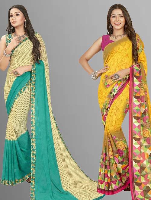 pack of 2 printed casual wear sarees with blouse - 21405969 - Very Small Image - 1