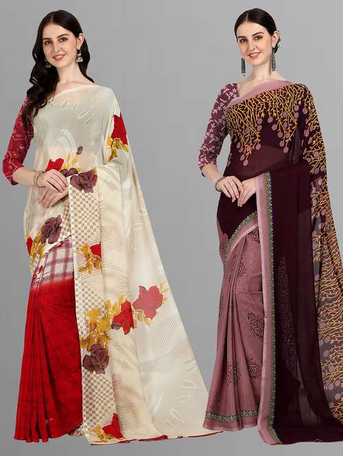 pack of 2 printed casual wear sarees with blouse