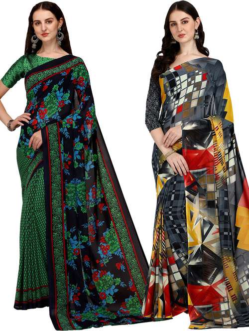 pack of 2 printed casual wear sarees with blouse