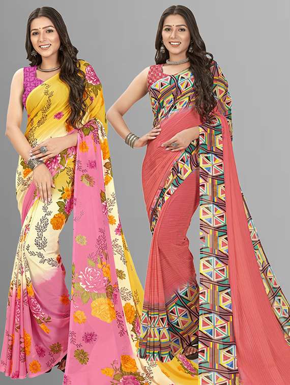 pack of 2 printed casual wear sarees with blouse - 21406080 - Very Small Image - 1