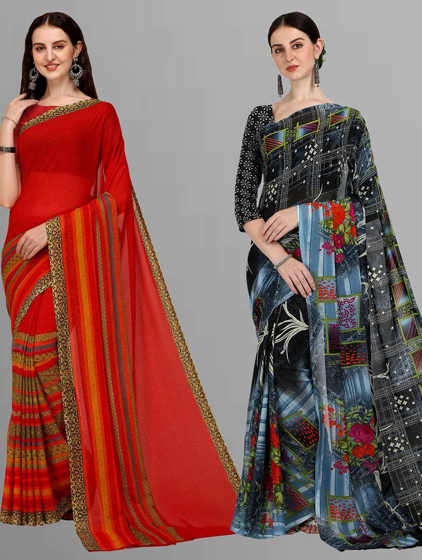 pack of 2 printed casual wear sarees with blouse