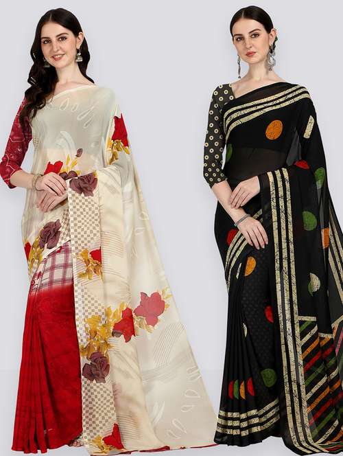 women combo pack of 2 printed saree with blouse - 21406104 - Very Small Image - 1