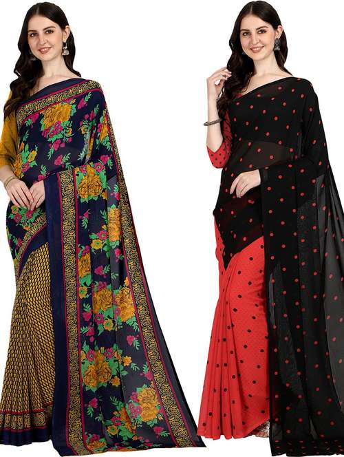 pack of 2 printed casual wear sarees with blouse - 21406119 - Very Small Image - 1