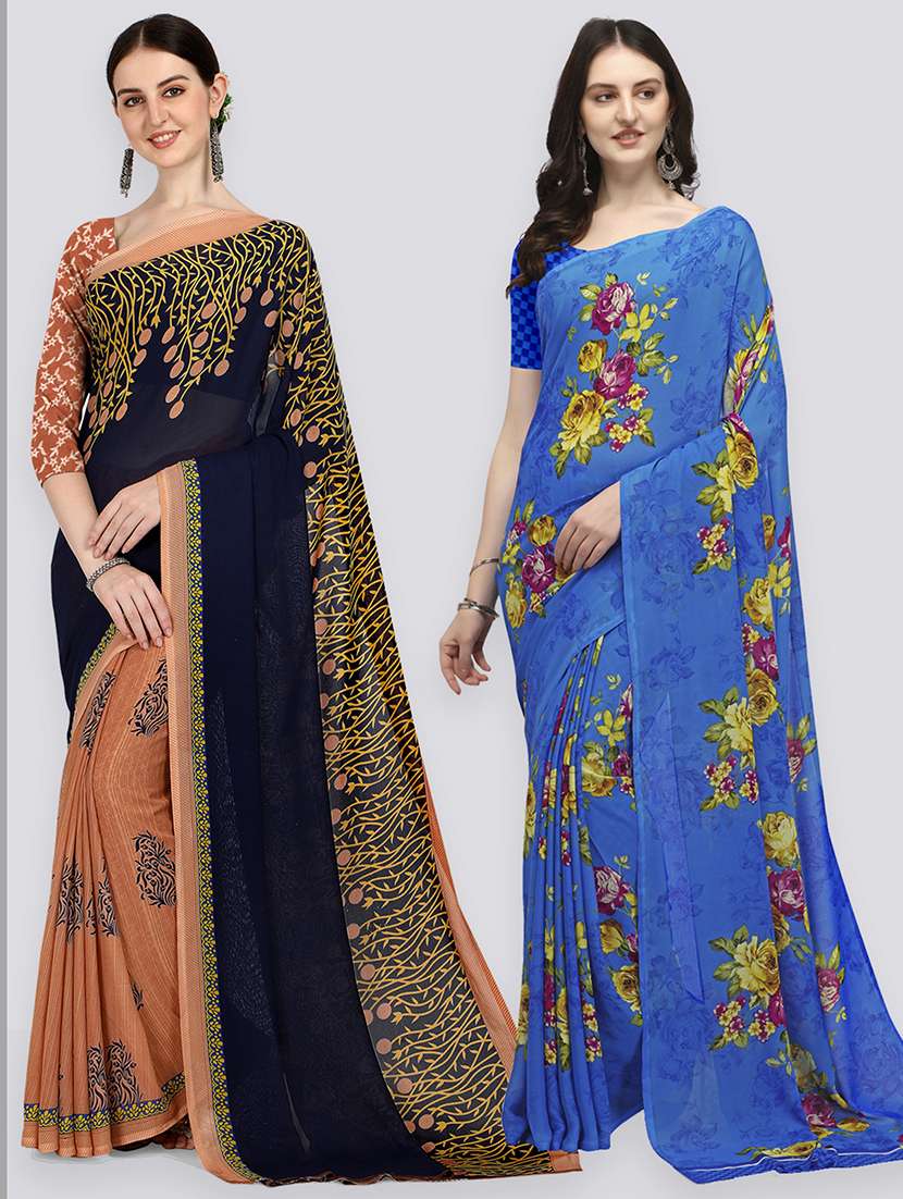 pack of 2 casual wear combo sarees with blouse - 21406142 - Very Small Image - 1