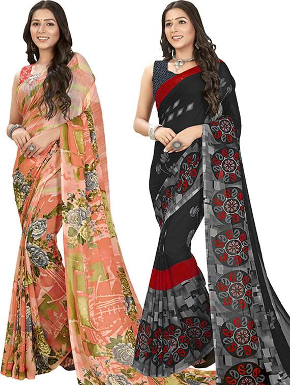 pack of 2 printed casual wear sarees with blouse - 21406156 - Very Small Image - 1