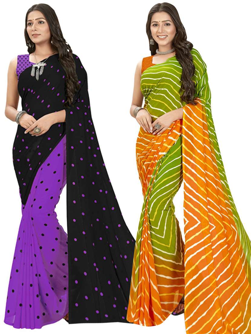 pack of 2 multi colored combo saree with blouse - 21406237 - Very Small Image - 1