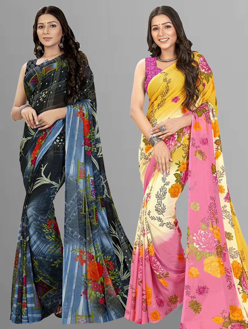 women pack of 2 printed saree with blouse - 21406345 - Very Small Image - 1