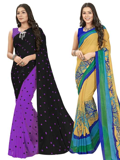 women pack of 2 printed saree with blouse