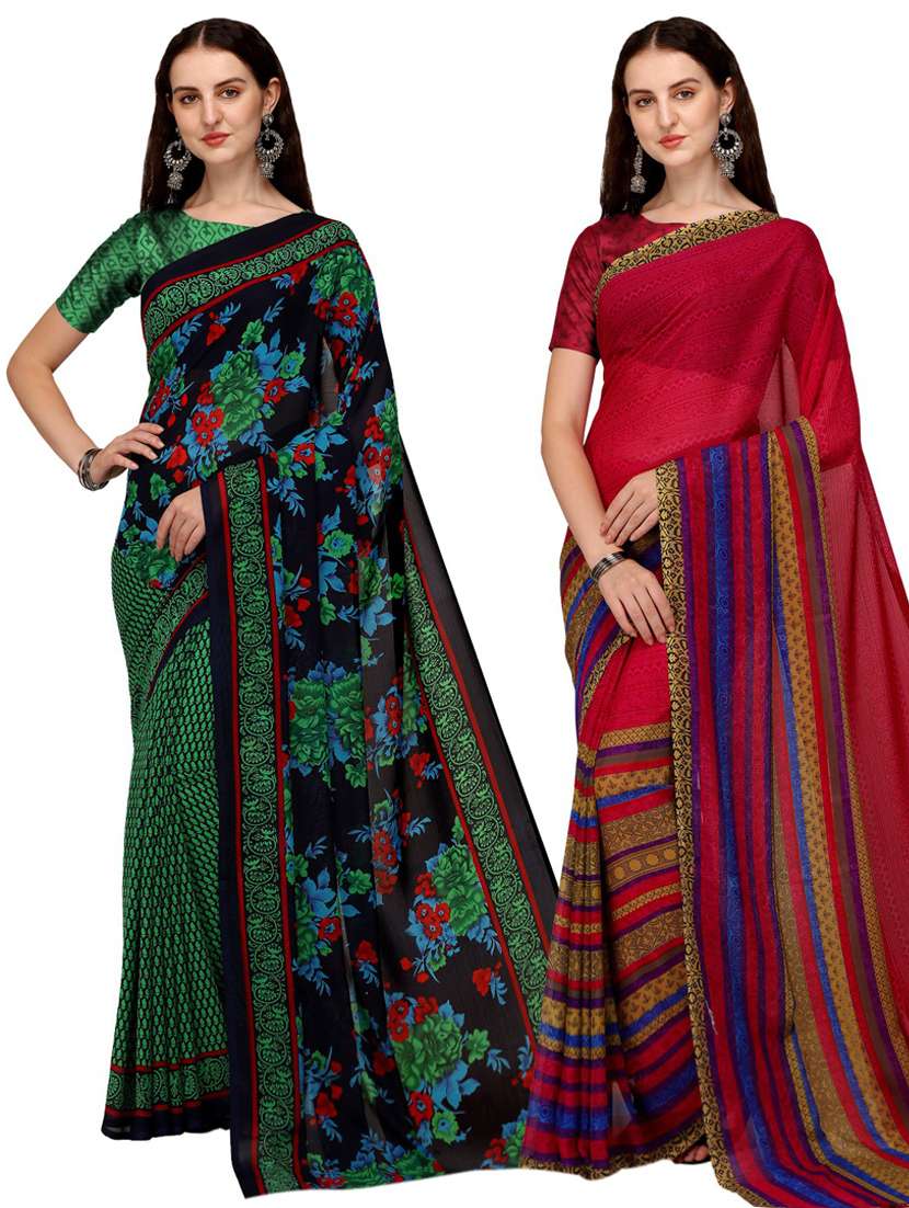 women pack of 2 printed saree with blouse - 21406360 - Very Small Image - 1