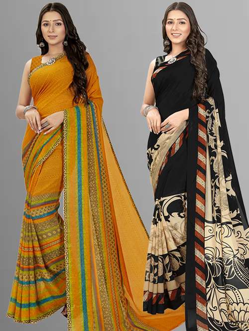 women pack of 2 printed saree with blouse - 21406500 - Very Small Image - 1