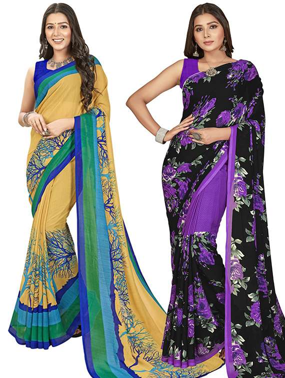 - » pack of 2 printed casual wear sarees with blouse