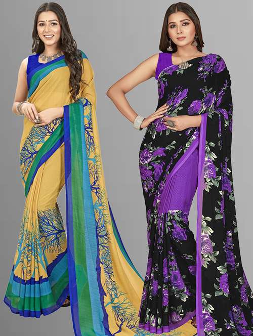 women pack of 2 printed saree with blouse - 21406542 - Very Small Image - 1