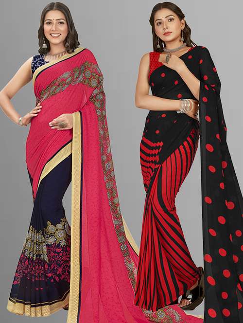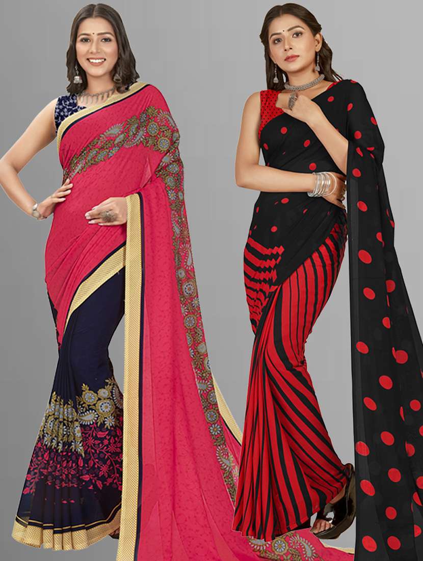 women pack of 2 printed saree with blouse - 21406621 - Very Small Image - 1