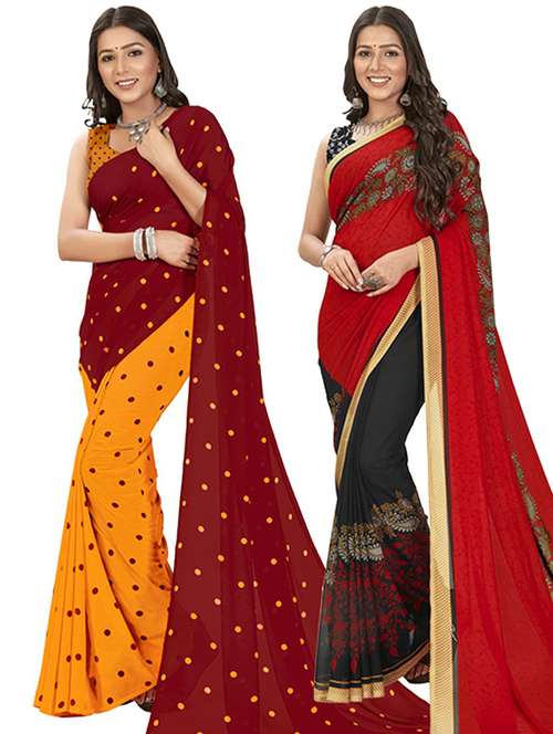 pack of 2 multi colored combo saree with blouse - 21406659 - Very Small Image - 1