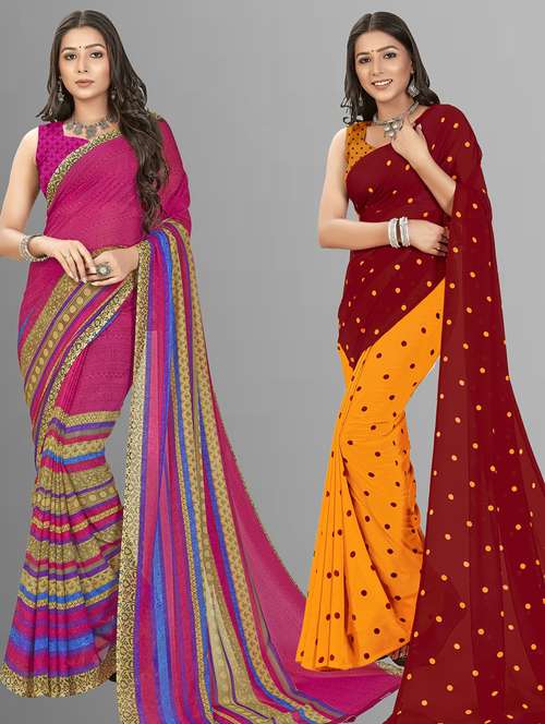 women combo pack of 2 printed saree with blouse - 21406711 - Very Small Image - 1