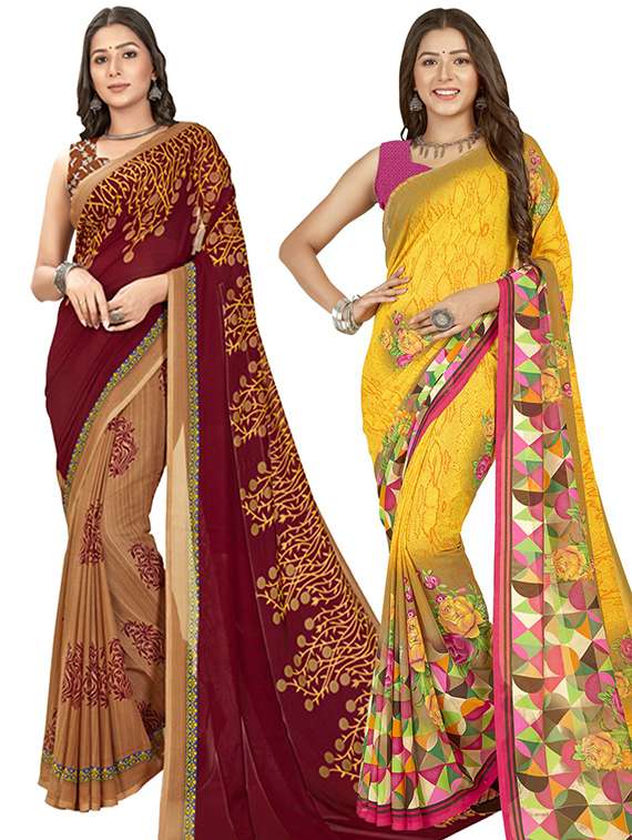 pack of 2 printed casual wear sarees with blouse