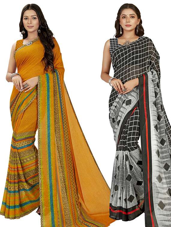 pack of 2 printed casual wear sarees with blouse