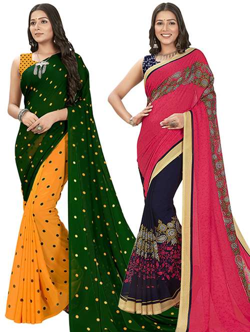 pack of 2 printed casual wear sarees with blouse - 21406821 - Very Small Image - 1