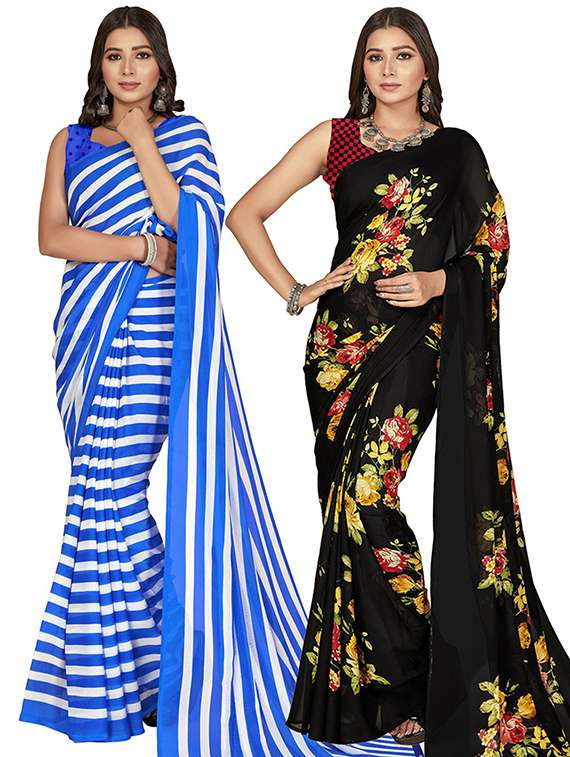 pack of 2 casual wear combo sarees with blouse - 21406985 - Very Small Image - 1