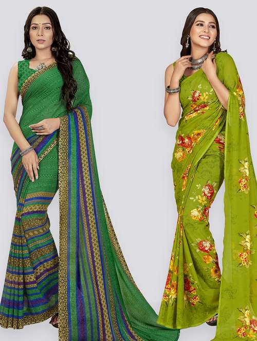 women pack of 2 casual wear combo sarees with blouse - 21407285 - Very Small Image - 1