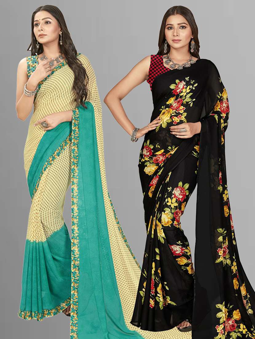 pack of 2 casual wear combo sarees with blouse - 21407296 - Very Small Image - 1