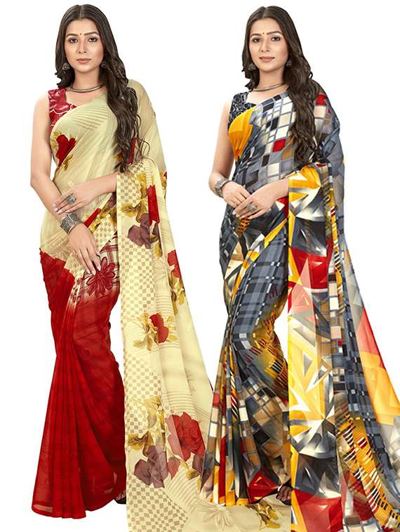 pack of 2 printed casual wear sarees with blouse
