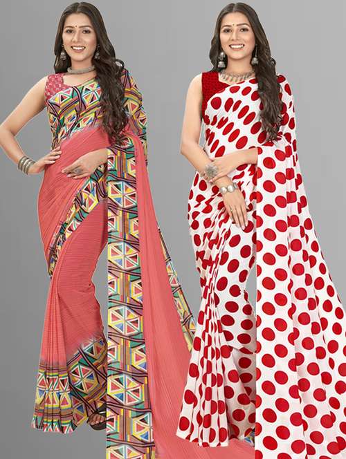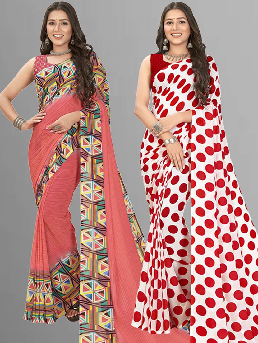 pack of 2 printed casual wear sarees with blouse - 21407330 - Very Small Image - 1