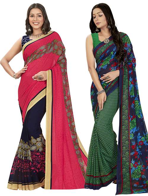 pack of 2 multi colored combo saree with blouse - 21407462 - Very Small Image - 1