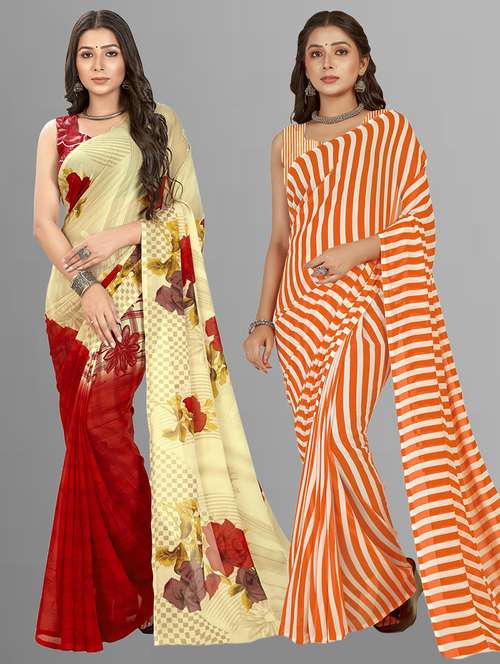 pack of 2 multi colored combo saree with blouse