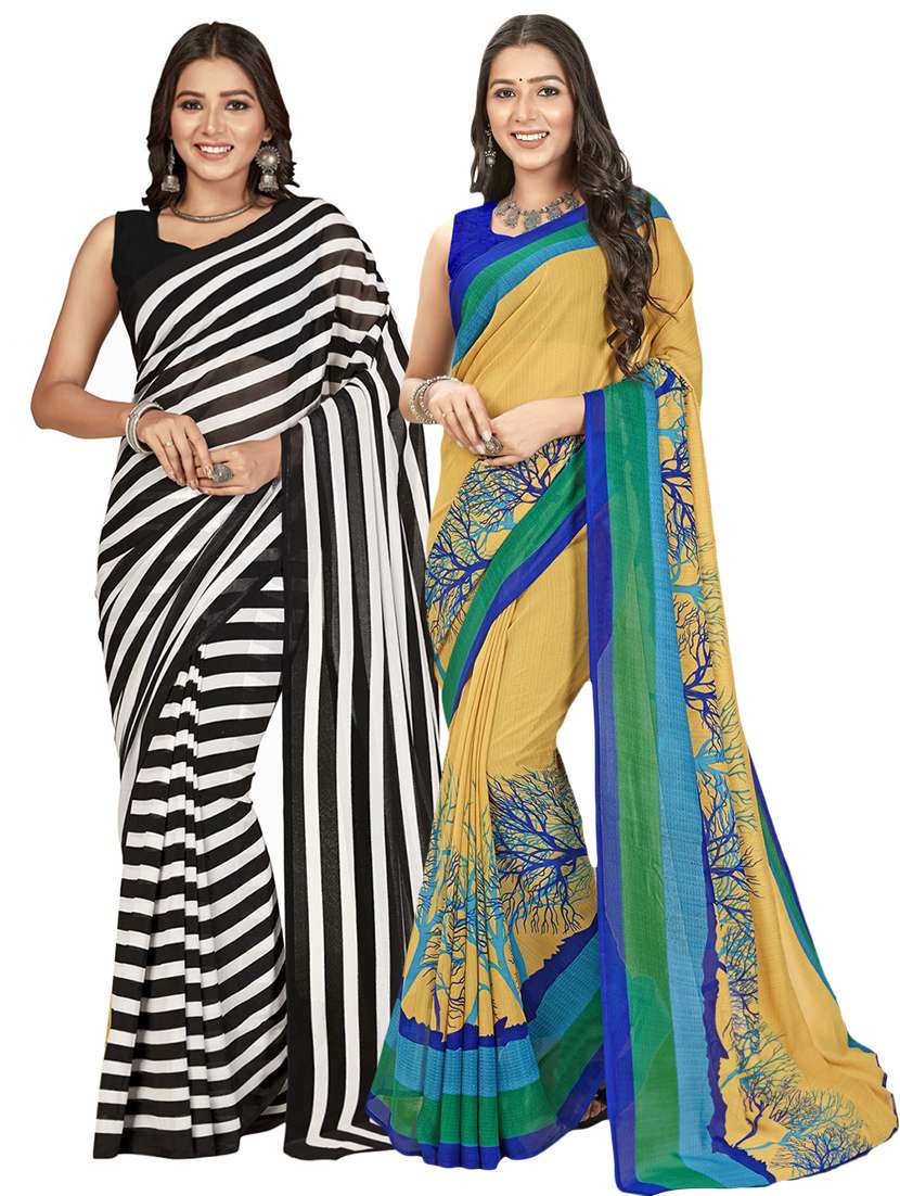 women pack of 2 printed saree with blouse - 21407517 - Very Small Image - 1
