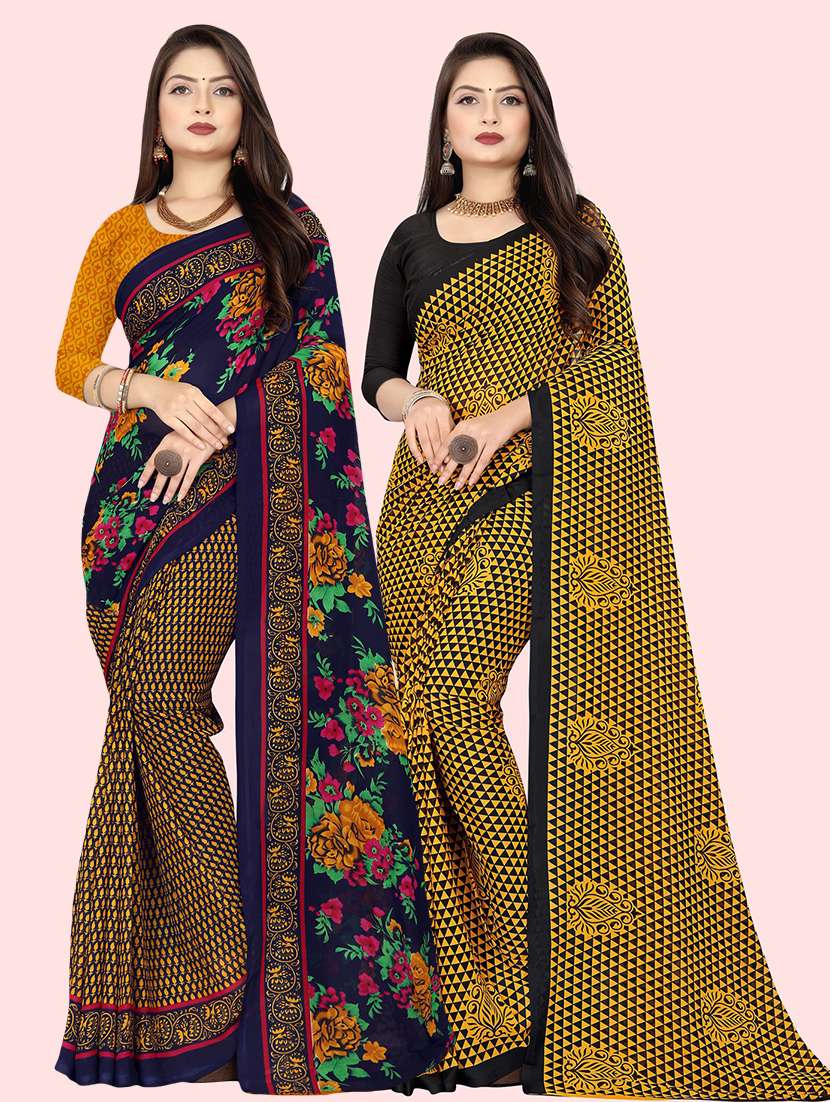 pack of 2 printed casual wear sarees with blouse - 21409606 - Very Small Image - 1