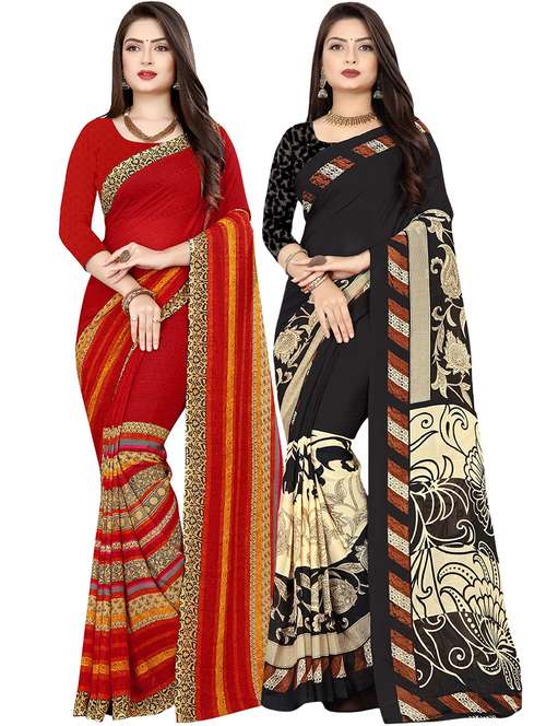 pack of 2 printed casual wear sarees with blouse - 21409617 - Very Small Image - 1