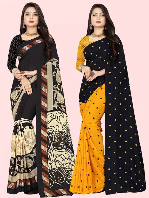 pack of 2 printed casual wear sarees with blouse - 21409685 - Very Small Image - 1