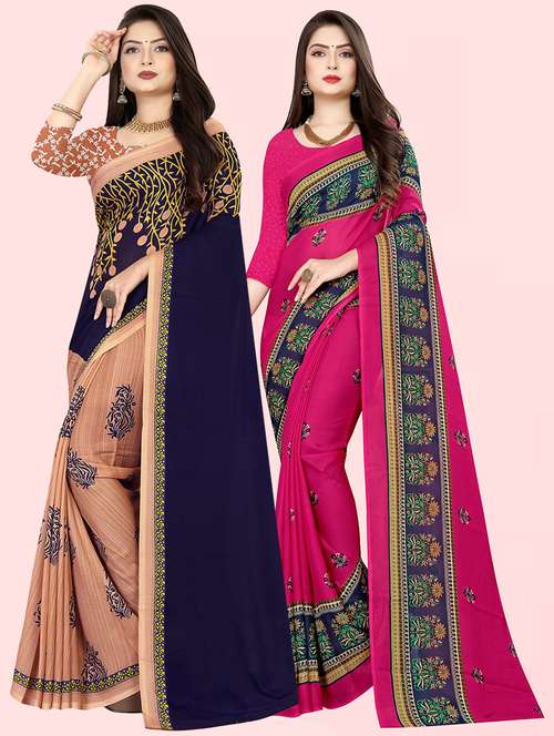 pack of 2 printed casual wear sarees with blouse