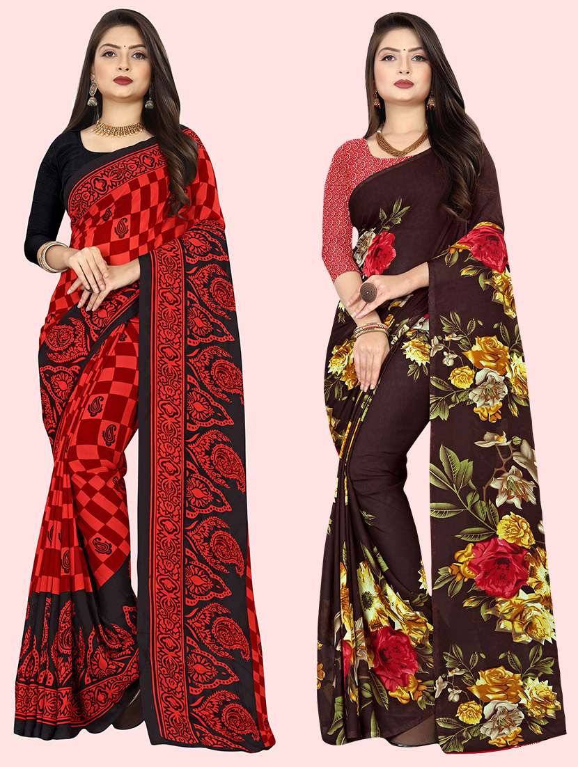 pack of 2 printed casual wear sarees with blouse