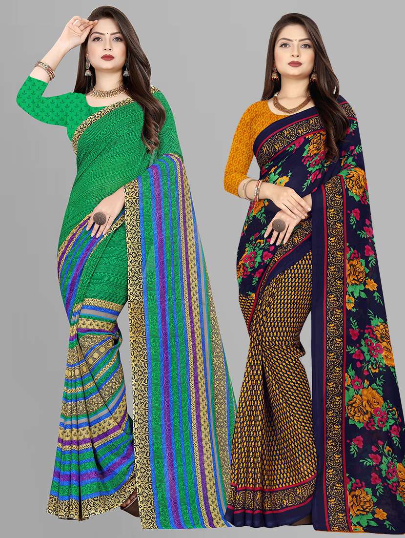 pack of 2 printed casual wear sarees with blouse - 21409771 - Very Small Image - 1