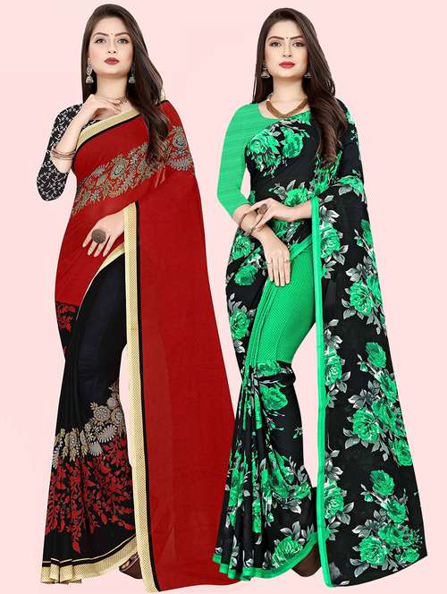 pack of 2 printed casual wear sarees with blouse - 21409836 - Very Small Image - 1
