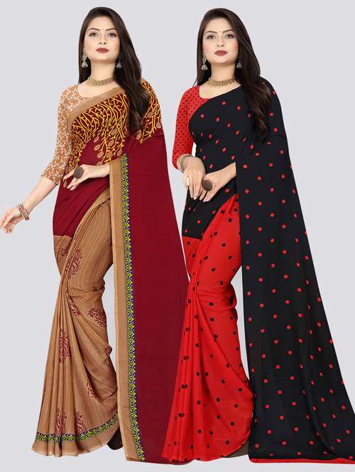 pack of 2 printed casual wear sarees with blouse - 21409872 - Very Small Image - 1