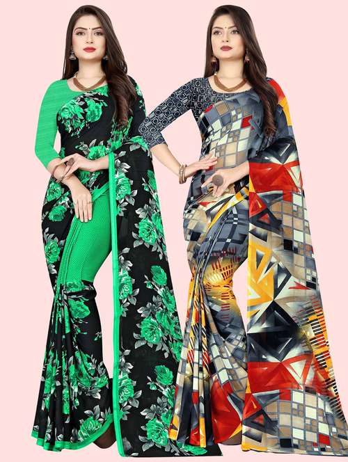pack of 2 printed casual wear sarees with blouse - 21410017 - Very Small Image - 1