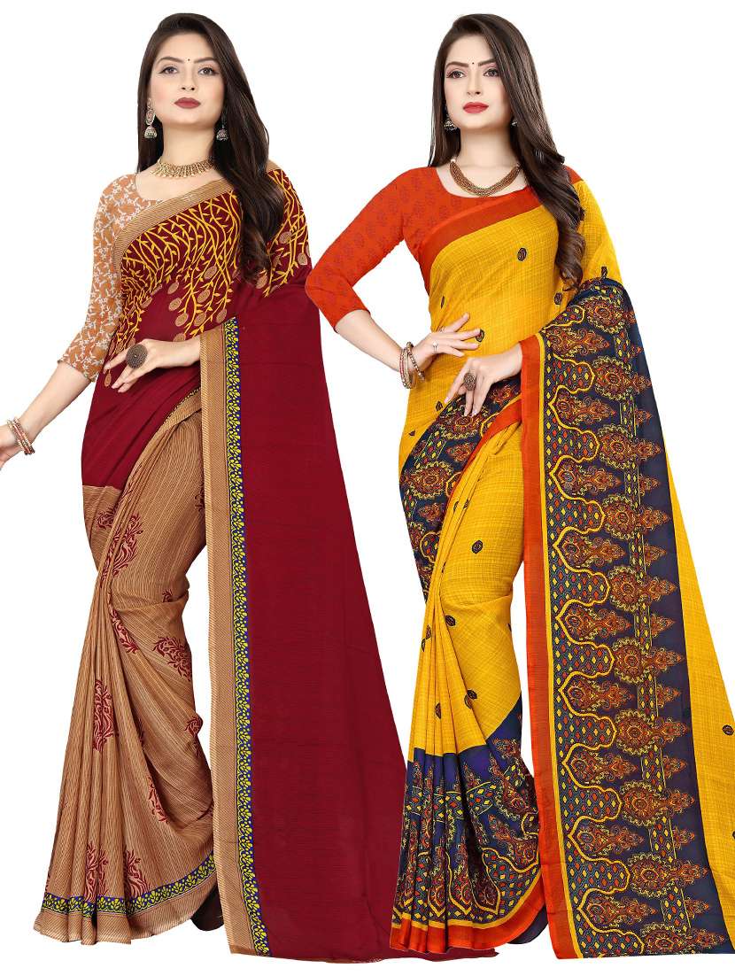 pack of 2 printed casual wear sarees with blouse - 21410091 - Very Small Image - 1