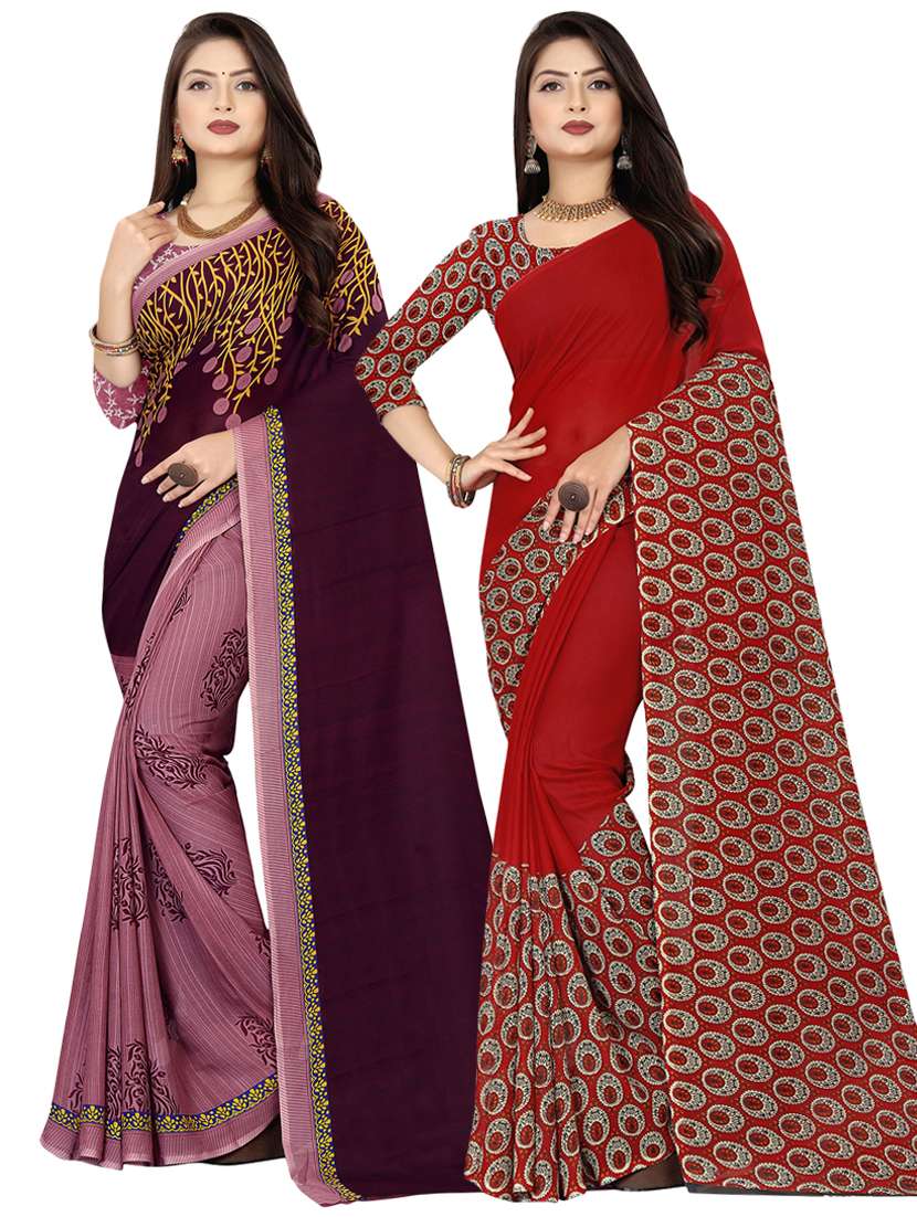 pack of 2 multi colored combo saree with blouse - 21410156 - Very Small Image - 1