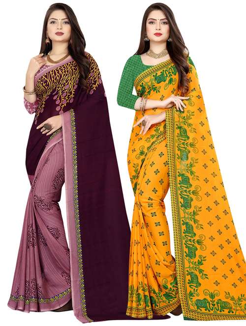 pack of 2 multi colored combo saree with blouse