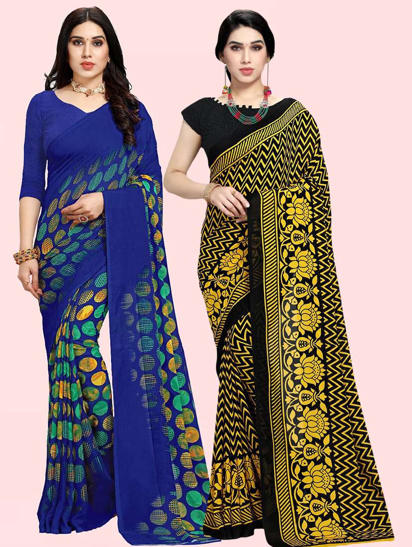 pack of 2 printed casual wear sarees with blouse