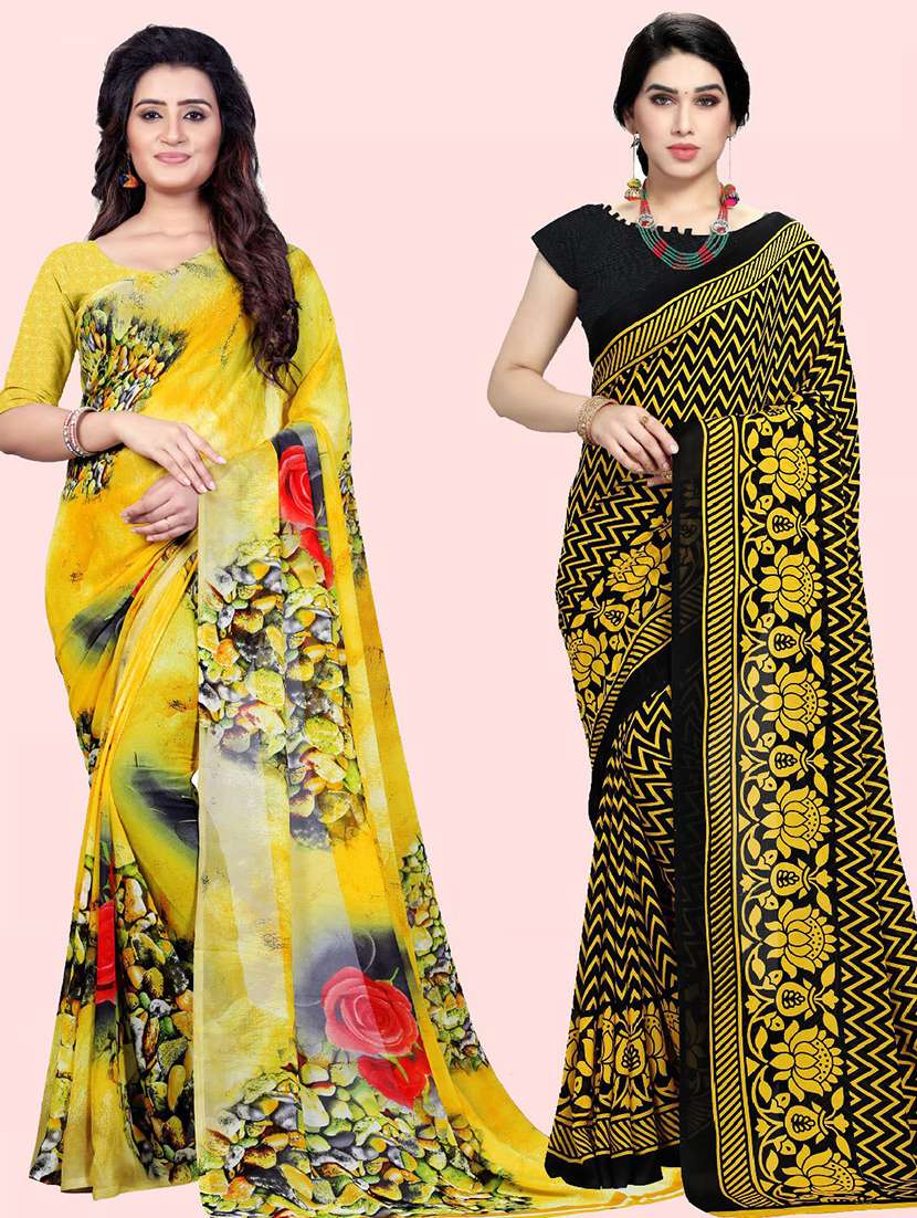 women pack of 2 casual wear combo sarees with blouse - 21410723 - Very Small Image - 1