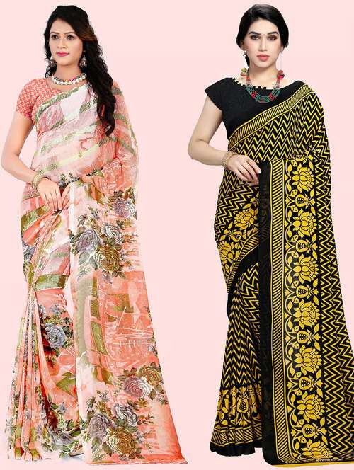 women pack of 2 casual wear combo sarees with blouse - 21410727 - Very Small Image - 1