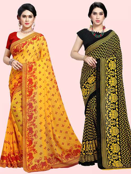 women pack of 2 casual wear combo sarees with blouse